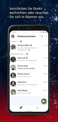 In addition to security, BwMessenger also focuses on COMFORT: In the chat, you can quote individual messages in a targeted manner, like content, or reward an outstanding contribution with applause. Surveys and polls are helpful for quickly reaching a joint decision, and attachments keep everyone on the same information level.