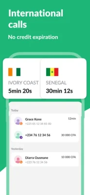 - Calls to +160 destinations in the world: Mali, Senegal, Ivory Coast, Philippines, Angola, Madagascar, Burkina Faso, Nigeria, Ghinea, Cameroun, DR Congo, Mauritania, Ghana…
