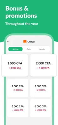 - A large choice of operators: Orange Mali, Orange Senegal, Orange Ivory Coast, Malitel Mali, Orange Guinea, MTN Ivory Coast, Free Senegal, Tigo Senegal, Orange Burkina Faso, Orange Madagascar, Moov Ivory Coast, Orange Mali, MTN Guinea, Orange Democratic Republic of Congo, Mauritel Mauritania, Orange Burkina Faso…