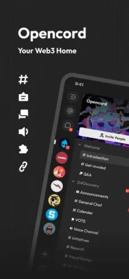 Opencord is the Web 3.0 social platform built for DAOs. It is designed for the efficient connections of DAOs, the seamless connections of DApps, and the like-mindedness connections of DAO friends.