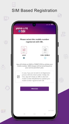 Select SIM 1 or SIM 2 to register on Yono Lite app. No SIM selection required in case of single SIM.